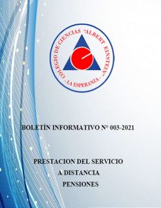 COMUNICADOS MARZO BOLETÍN INFORMATIVO N° 001-2021 EDUCACIÓN A DISTANCIA BOLETÍN INFORMATIVO N°002-2021 NORMAS DE CONVIVENCIA BOLETÍN INFORMATIVO N°003-2021 PENSIONES Y PRESTACION DEL SERVICIO